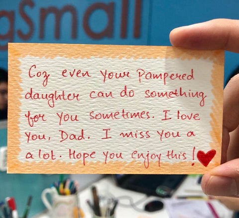 However, the gifts in themselves are not the only unique thing bringing your father's their deserved share of adulation. Every product Bigsmall sends out can be customized with a personal note of your choice, handwritten by us, with love - where's the personal touch of love in those robotically printed notes? Is there a better way to wish your father this father's day?