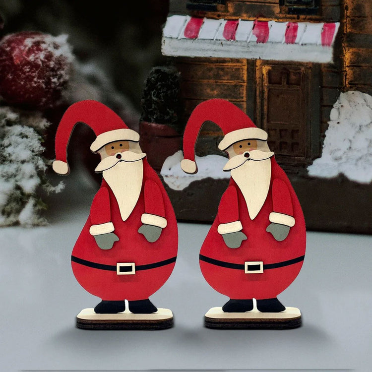 A beautifully printed wooden Santa décor piece with natural wood showing through for a warm festive effect.