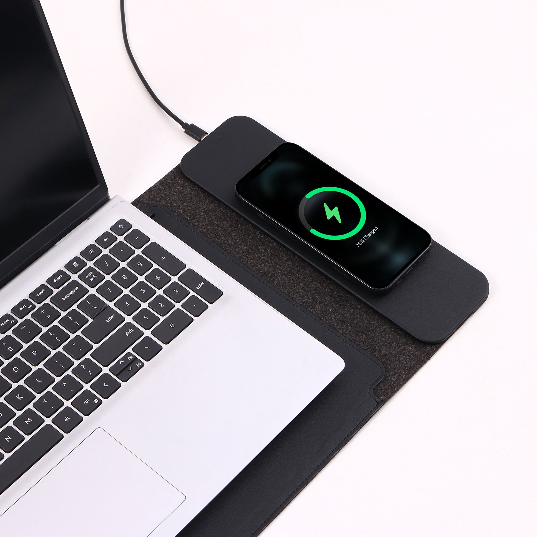 Carry, protect, and power up your essentials with ease. This sleek sleeve combines storage and wireless charging in one smart design. Simply place your devices on the charging area to stay powered throughout the day. Ideal for work, travel, or everyday use, it keeps your laptop and accessories neatly organized and ready to go.