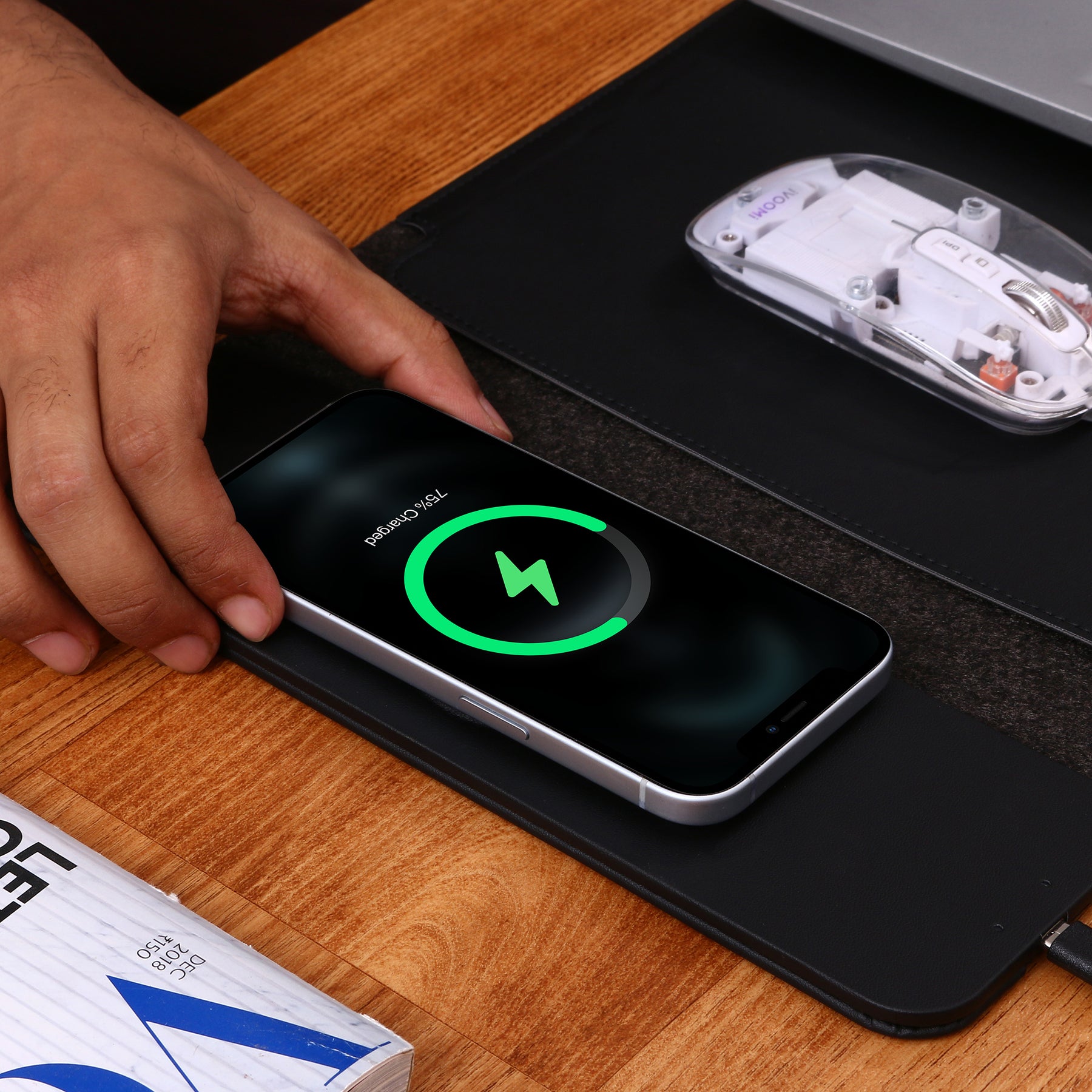 A 3-in-1 wireless charging laptop sleeve crafted to organize, protect, charge, and streamline your devices effortlessly.