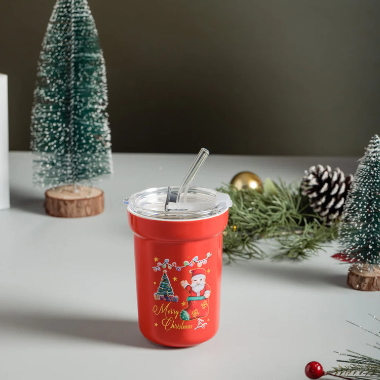Christmas ceramic sipper with a glass straw to bring holiday joy to every sip.