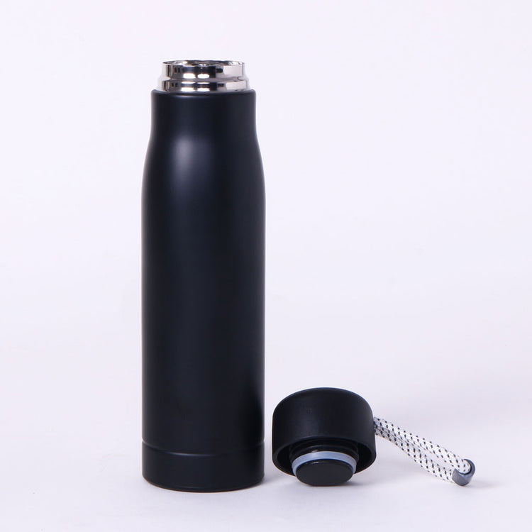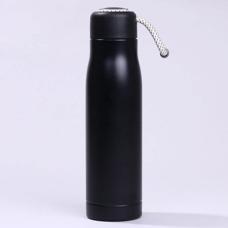 This sturdy bottle is made with non-corrosive steel and has a smooth black finish for a clean, modern look. It’s easy to carry with a loop handle, doesn’t leak, and works great for everyday use—whether at work, the gym, or on the go. The wide opening makes refilling and cleaning simple.