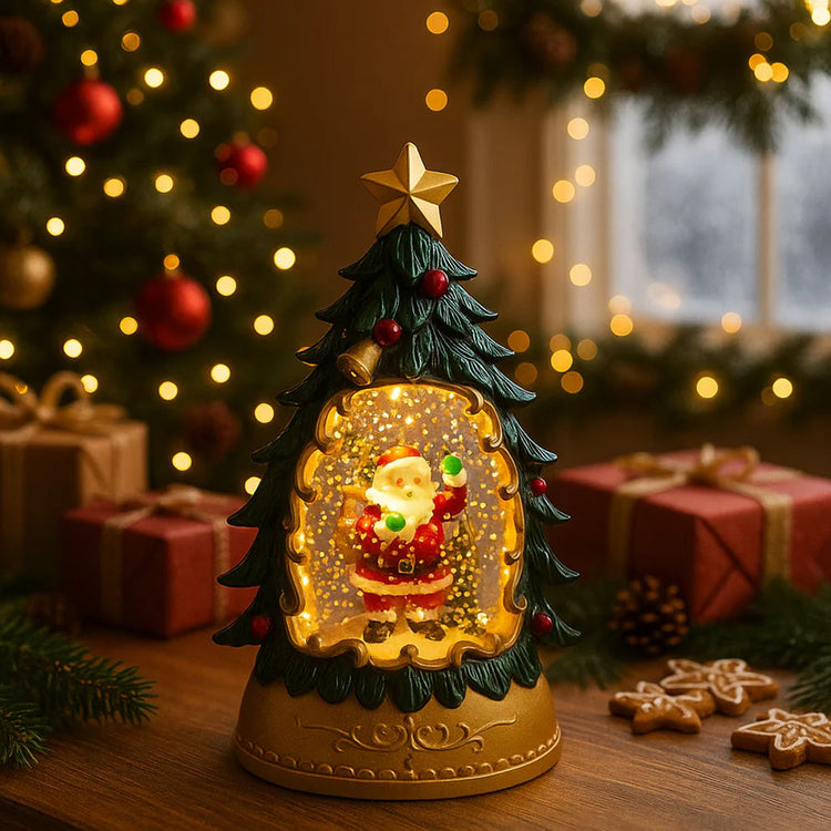 - Design: Elegant Christmas tree shape with sparkling snow-glitter interior