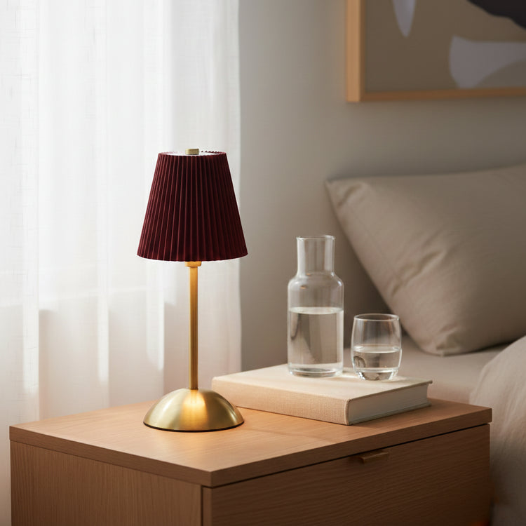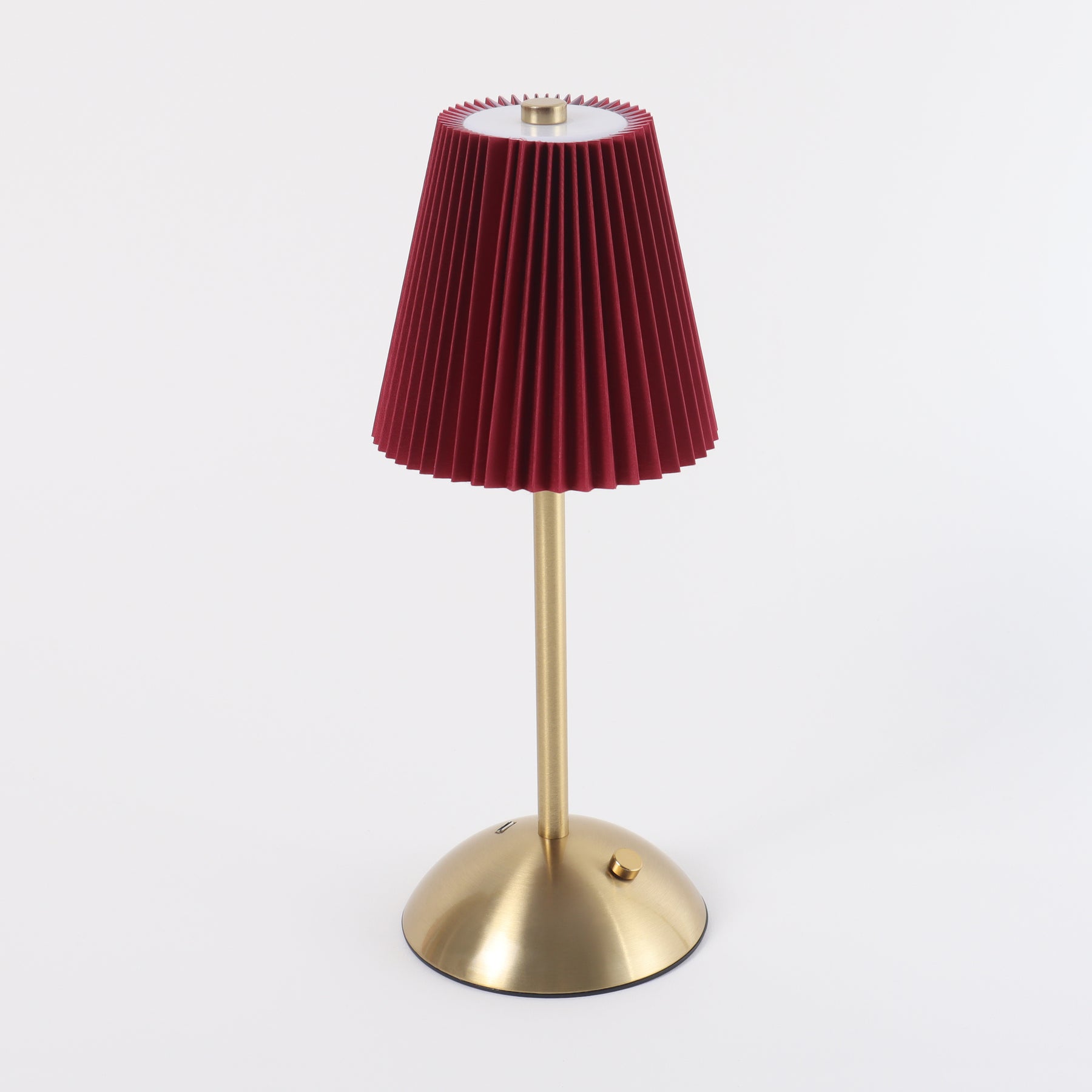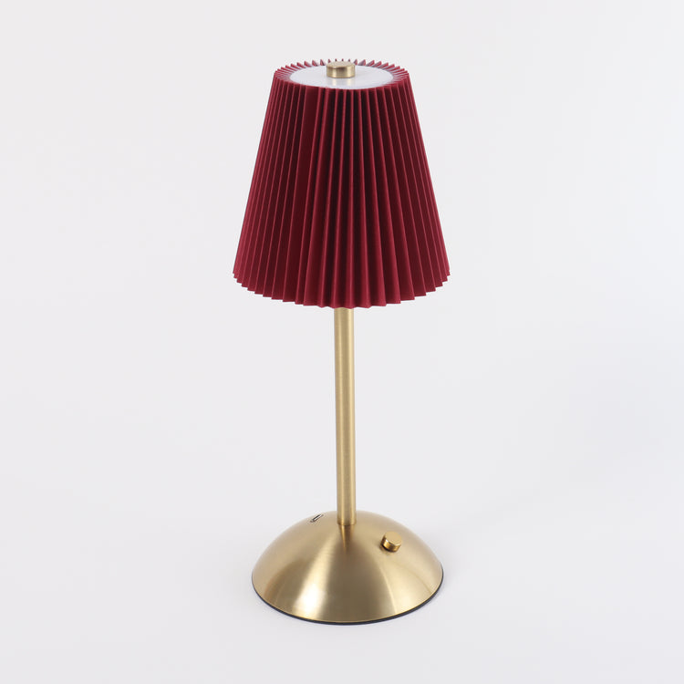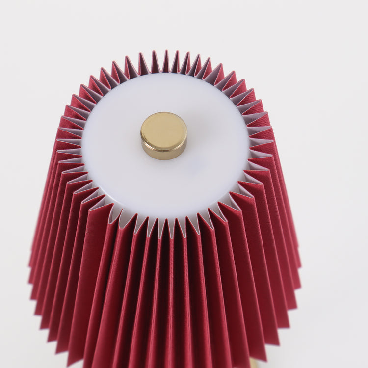 - Material: Metal stand & red-toned pleats structured fabric lamp