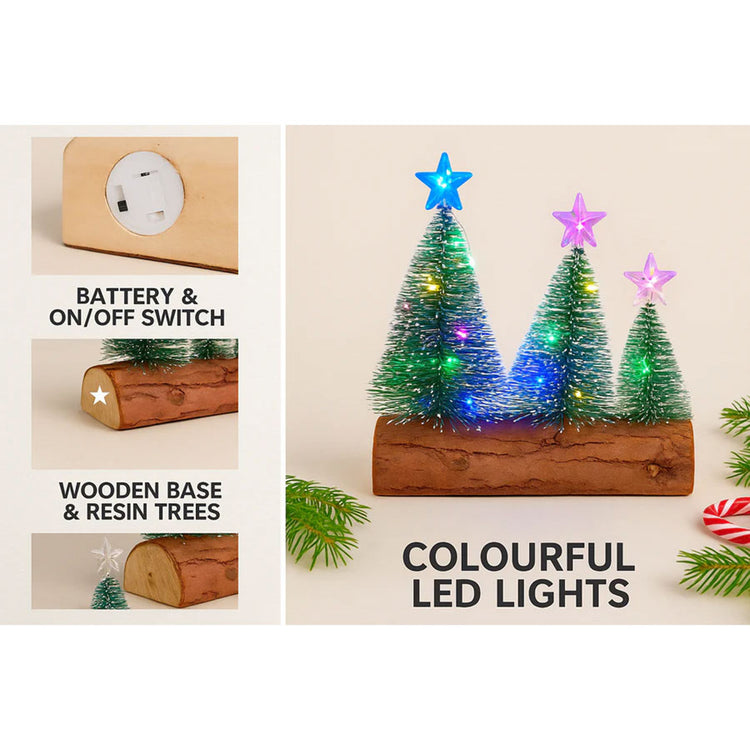 - Mini Tree Set: 3 handcrafted pine trees on a single wooden base