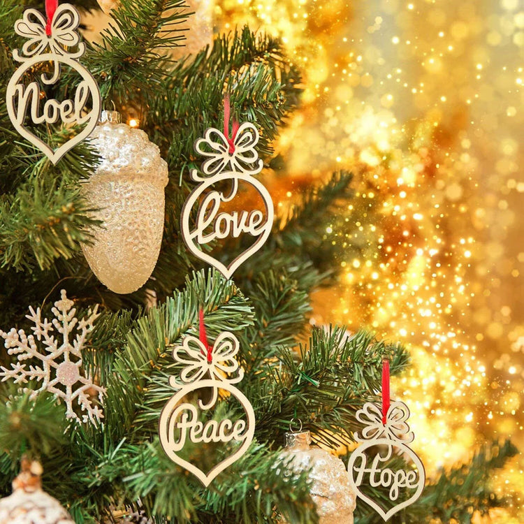 - Set: Includes 6 laser-cut festive word ornaments