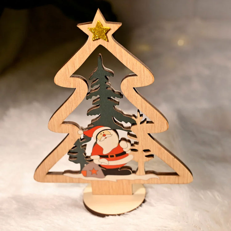 Wooden Christmas Table Decor – Santa & Tree Scene
